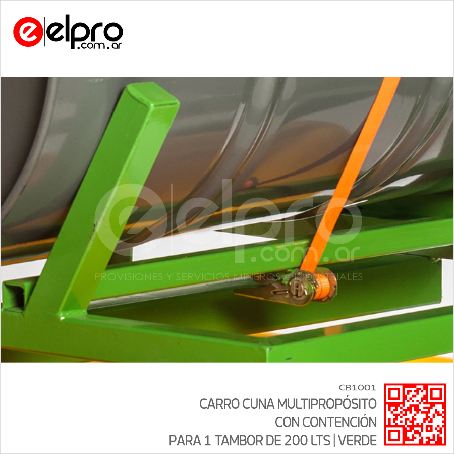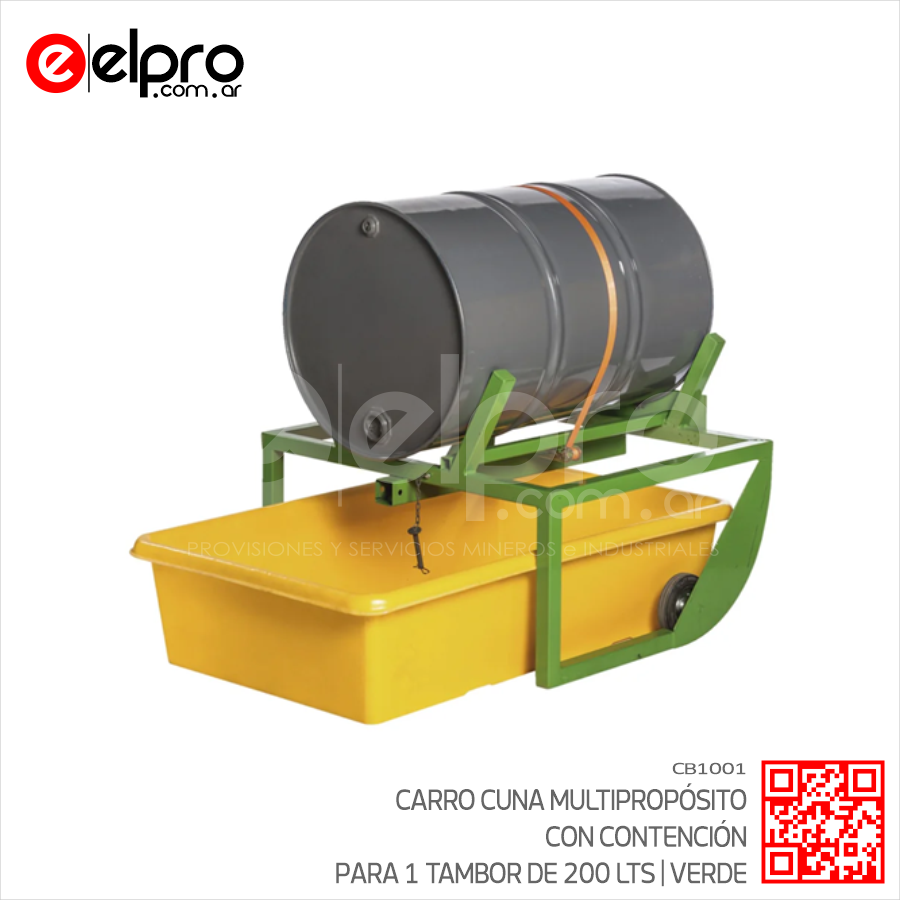 - Cuando el carro está en la posición horizontal, se puede colocar la batea CB1002 (no incluida) debajo del tambor, para que el mismo tenga una contención en caso de un derrame.