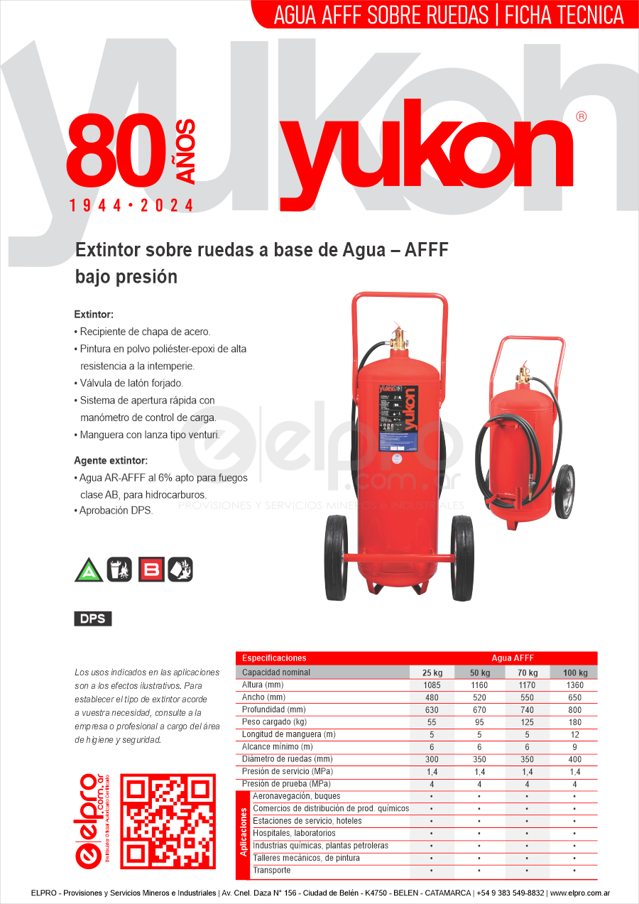 EXTINTOR SOBRE RUEDAS AFFF BASE AGUA BAJO PRESIÓN P/HIDROCARBUROS IRAM-DPS YUKON