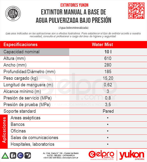 - Apto para fuegos clase A y C, con gran capacidad de extinción.
