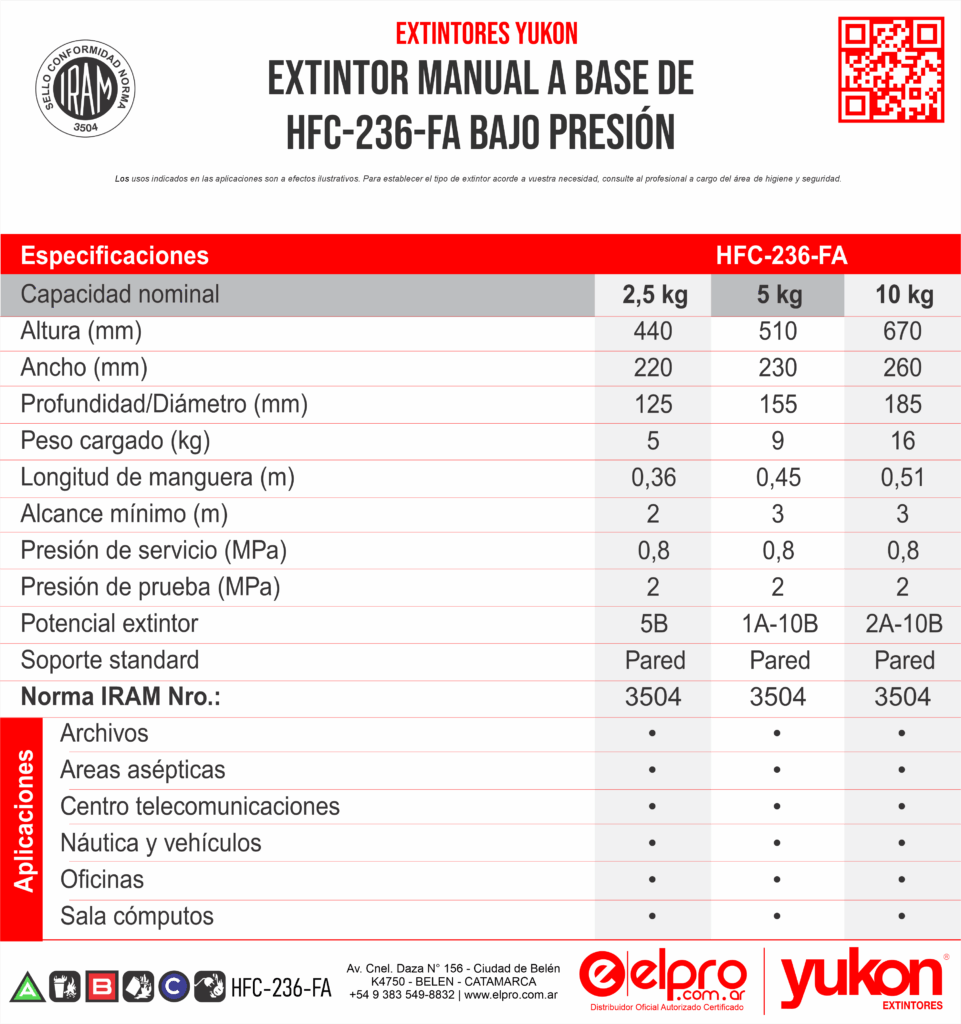 - HCFC 236-fa (reemplazante ecológico del HCFC 123), para fuegos clase ABC.