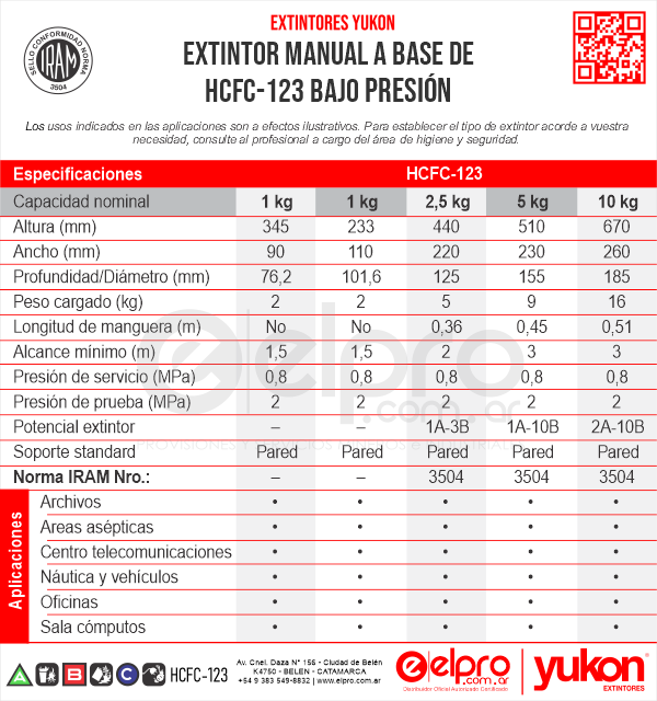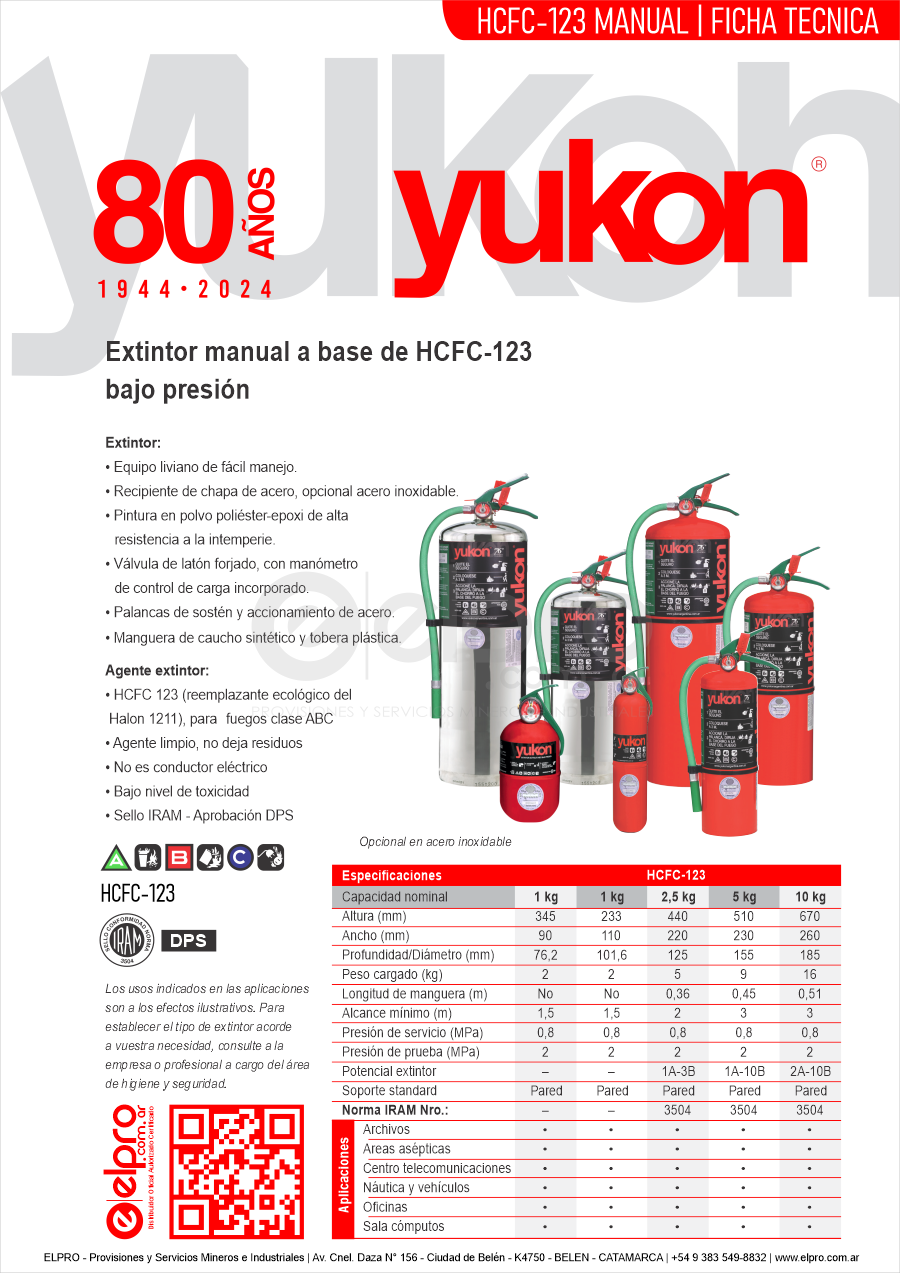 - HCFC 123 (reemplazante ecológico del Halón 1211), para fuegos clase ABC.