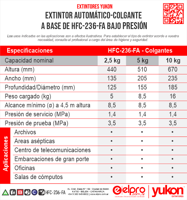 - HFC-236-FA (reemplazante ecológico del HCFC123), para fuegos clase ABC.