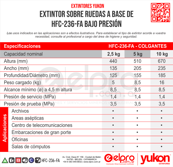 - HFC 236-FA (reemplazante ecológico del HCFC 123), para fuegos clase ABC.