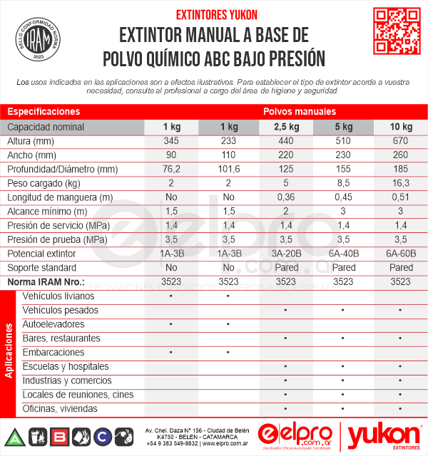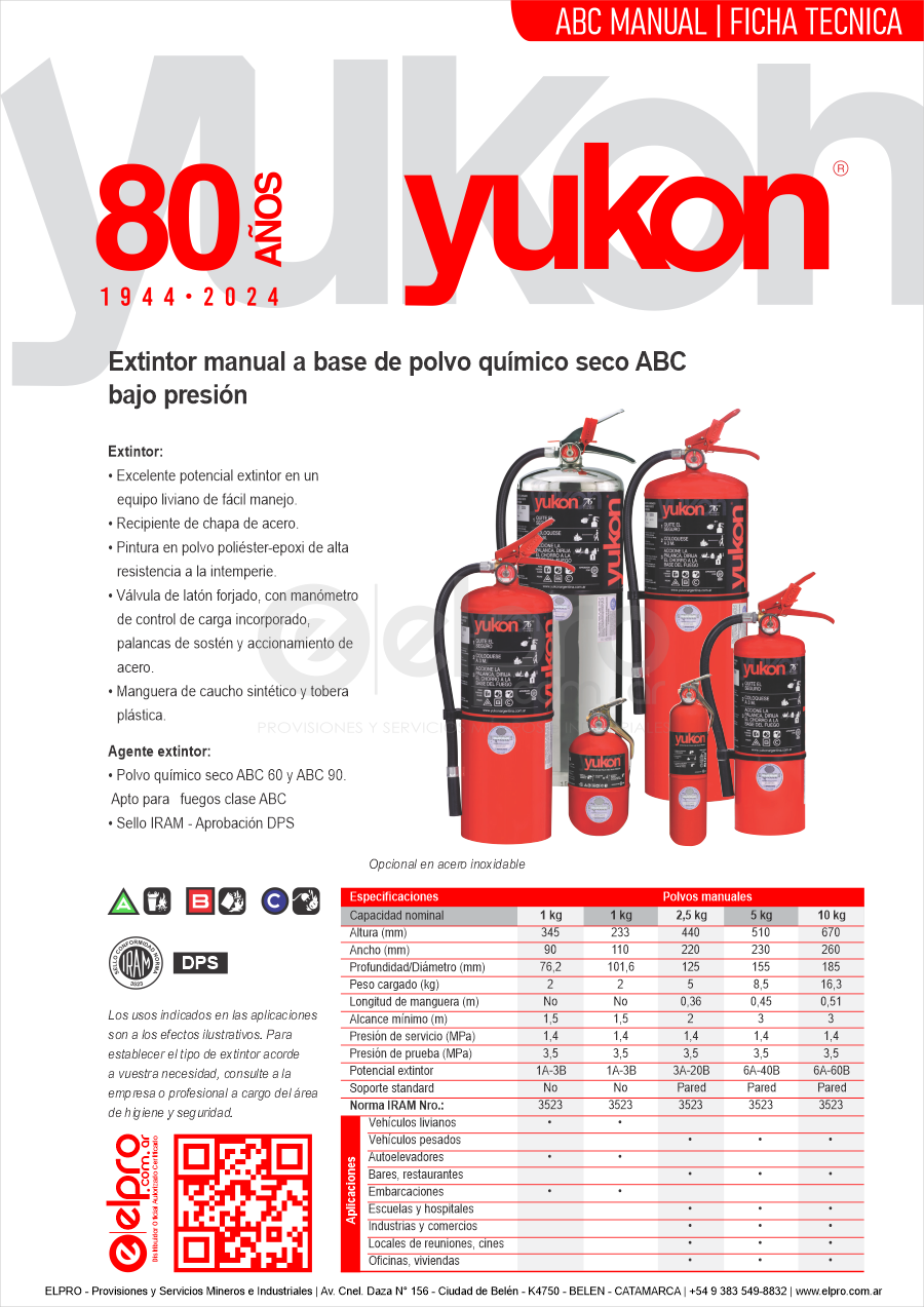 - Polvo químico seco ABC 60 y ABC 90. Apto para fuegos clase ABC.
