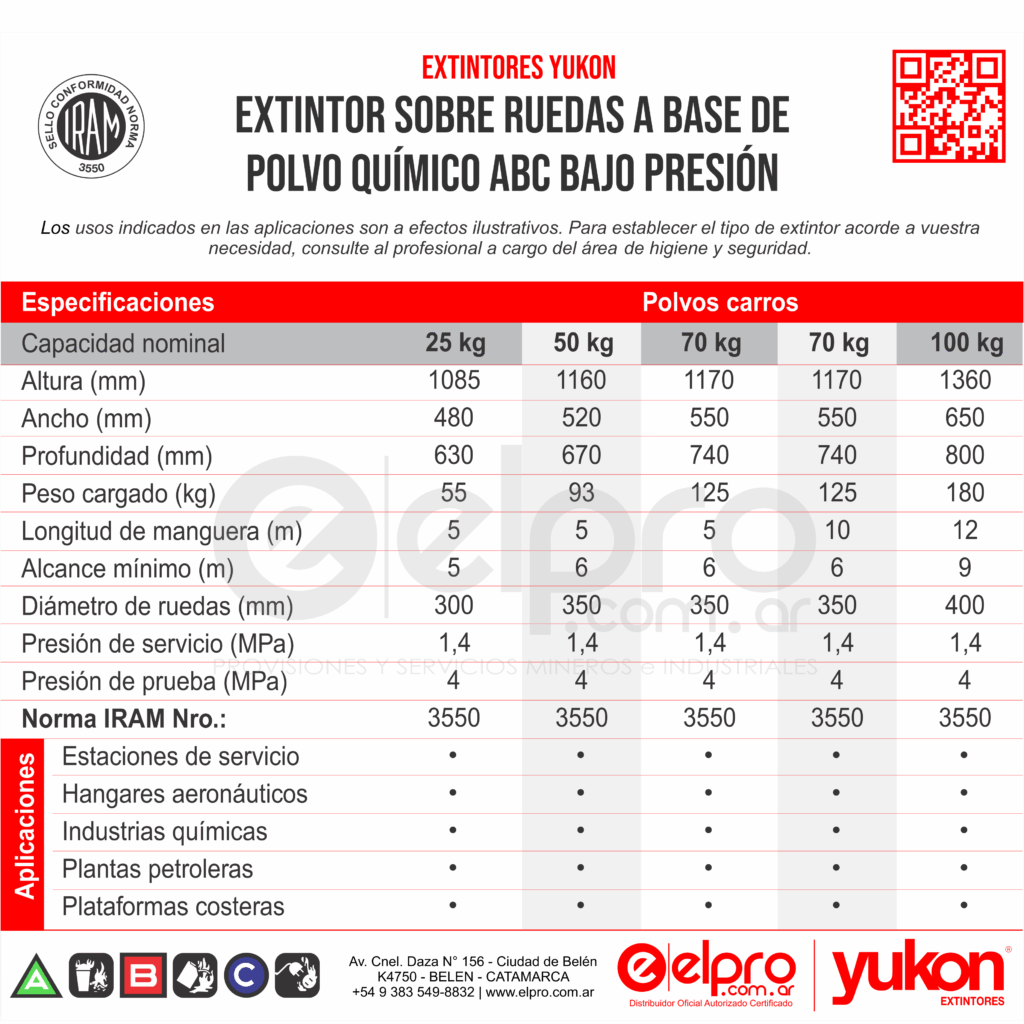 - Polvo químico seco ABC 60 y ABC 90. Apto para fuegos clase ABC.