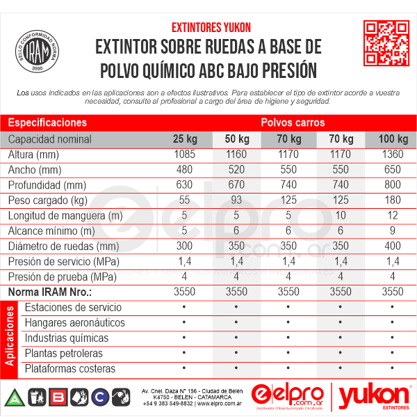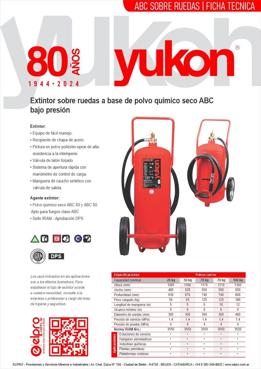 - Polvo químico seco ABC 60 y ABC 90. Apto para fuegos clase ABC.