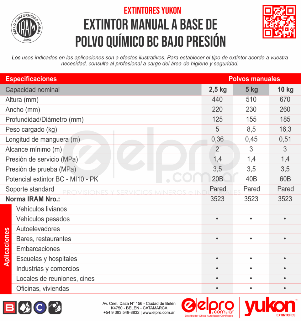 - Excelente potencial extintor en un equipo liviano de fácil manejo.