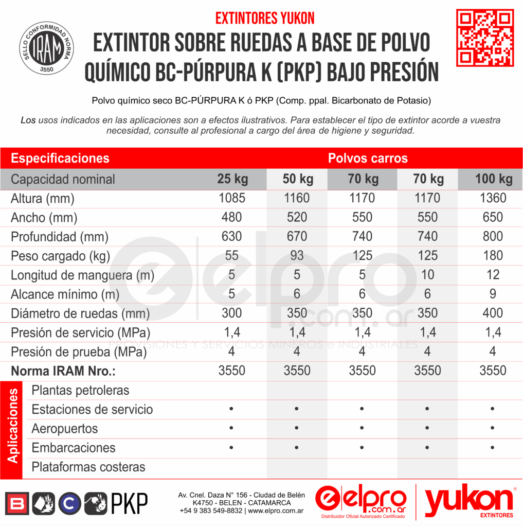 - Polvo químico seco BC-PÚRPURA K-PKP (Comp. principal Bicarbonato de Potasio). Apto para fuegos clase BC.