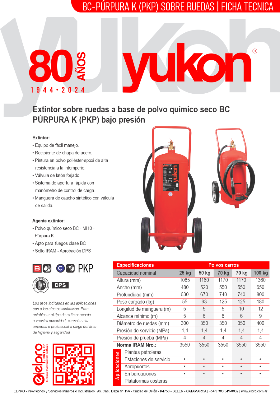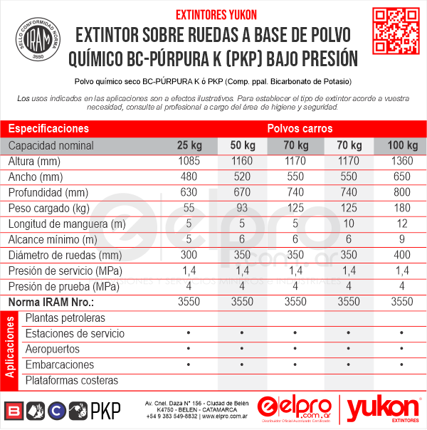 - Polvo químico seco BC-PÚRPURA K-PKP (Comp. principal Bicarbonato de Potasio). Apto para fuegos clase BC.